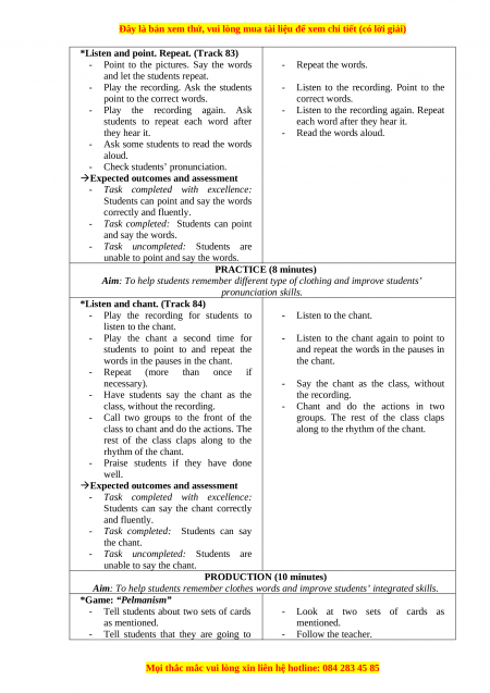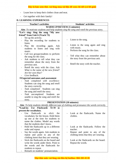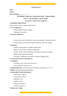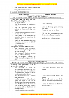 C. RESOURCES AND MATERIALS - Student book - page 54 - Audio tracks 73, 83-85 - Flashcards 74-78 - Teacher’s Guide - Website sachso.edu.vn - Computer, projector, …. *Culture note: Clothes
