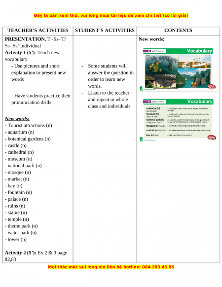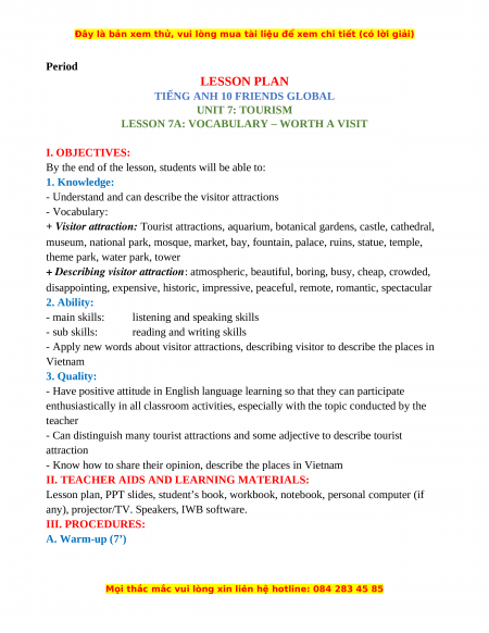 Giáo án Unit 7: Tourism Tiếng Anh 10 Friends global