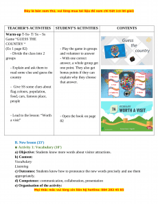 LESSON 7A: VOCABULARY – WORTH A VISIT I. OBJECTIVES:
