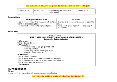 UNIT 7: VIET NAM AND INTERNATIONAL ORGANISATIONS