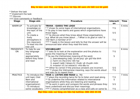 Giáo án Unit 7: Viet Nam and international organisations Tiếng anh 10 Global success