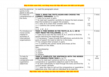 comprehension of CORRECT ANSWERS. (p.77) the texts. * T asks Ss to work in pairs. T-S