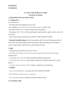 + the unit is to help build sts’ knowledge about THE WORLD OF WORK .