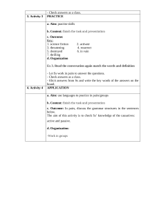 The aim of this activity is to check Ss’ knowledge of the causatives: active and passive. d. Organization: -Work in groups Planning date: Teaching date: