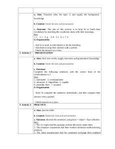 I. AIMS/OBJECTIII.ES OF THE LESSON 1. Language focus Sts will be able to: