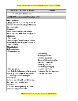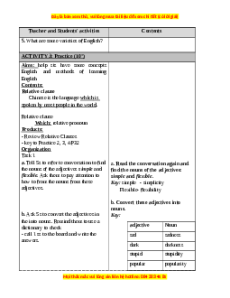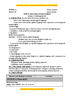 - Ss are interested in English as a global language and experiences in learning and using English 3. Competences: - Co-operation - Self- study