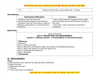 Giáo án Unit 9: Protecting the Environment Tiếng anh 10 Global success