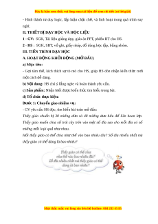 III. TIẾN TRÌNH DẠY H C Ọ A. HOẠT Đ N Ộ G KH I Ở Đ N Ộ G (M Đ Ở U Ầ ) a) M c t ụ iêu: - G i ợ tâm th ,
