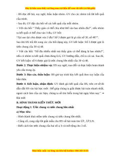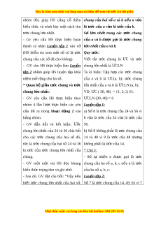 ề a trong Hoạt đ ng 1 ộ . a) Các ư c ớ c a ủ 30 và c a ủ 48 theo - Sau m i ỗ ph n ầ tr ả l i ờ c a ủ HS ở câu th t ứ t ự ăng d n: ầ b, c, GV k t ế lu n ậ theo bóng nói Các ư c ớ Các ư c ớ khám phá ki n t ế h c. ứ c a ủ 30 c a 48 ủ - GV m i ờ m t ộ vài HS đ c ọ khung 1 1 2 2 ki n t ế h c t ứ r ng t ọ âm và ghi nh . ớ 3 3 - GV hư ng ớ d n ẫ HS sử d ng ụ kí 5 4 6 6 hiệu: C Ư (a, b), C Ư LN(a, b). 10 8 - GV hư ng ớ d n ẫ HS đ c ọ hi u ể VD1 15 12 30 16 giúp HS v n ậ d ng ụ tr c ự ti p ế ki n ế 24 th c ứ v a ừ h c ọ vào gi i ả quy t ế yêu 48 b) Các số v a ừ ở c t ộ thứ nh t ấ v a ừ ở cầu. c t ộ th 2 l ứ à: 1;2;3;6. - GV hư ng ớ d n ẫ HS mở r ng ộ các K tế lu n: ậ khái ni m ệ đã h c cho ba s ọ ố.