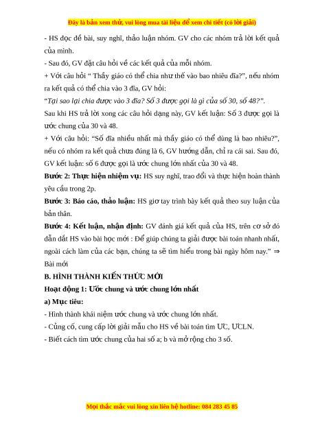ẫ ch ỉra cái sai. Sau đó, GV k t ế lu n: ậ số 6 đư c ợ g i ọ là ư c chung ớ l n nh ớ t ấ c a ủ 30 và 48. Bư c ớ 2: Th c hi ự n nhi ệ m ệ v :