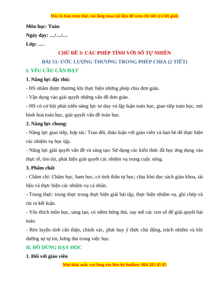 BÀI 51: ƯỚC LƯỢNG THƯƠNG TRONG PHÉP CHIA (2 TIẾT)