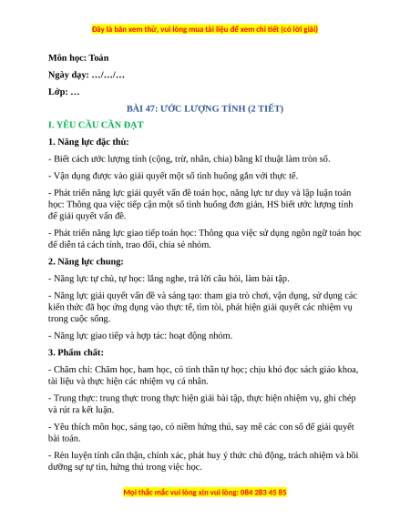 Giáo án Ước lượng tính Toán lớp 4 Cánh diều