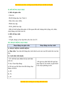- Bộ đồ dùng dạy, học Toán 4. - Máy tính, máy chiếu. - Phiếu học tập. - SGK, phiếu học tập.