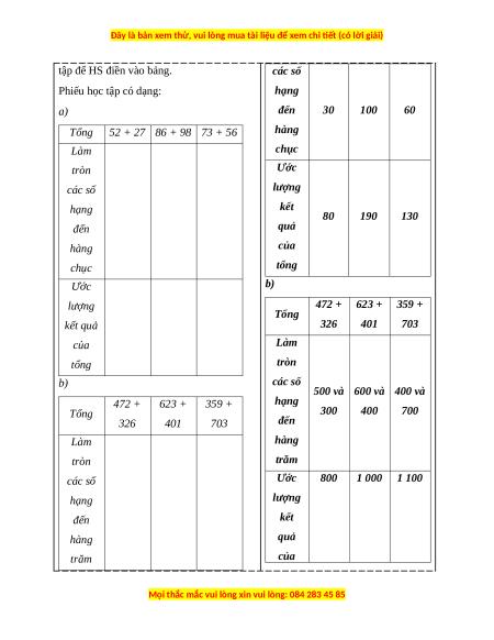 b) Làm tròn các số hạng đến hàng trăm rồi - Kết quả: