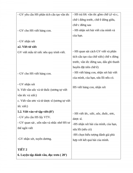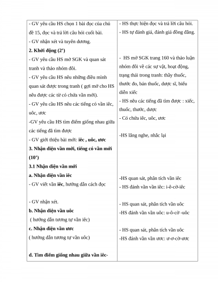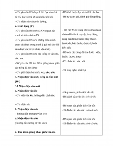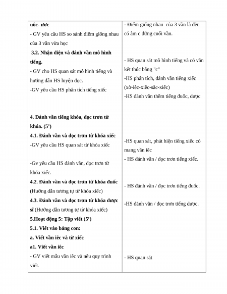 - Nhận diện sự tương hợp giữa âm và chữ của vần iêc, uôc, ươc; nhận diện cấu trúc