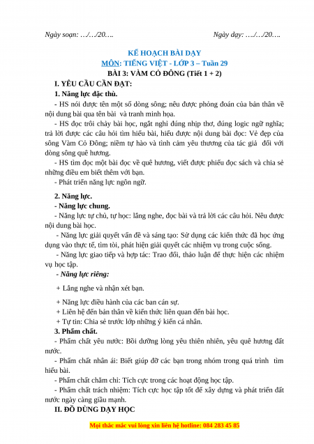 BÀI 3: VÀM CỎ ĐÔNG (Tiết 1 + 2) I. YÊU CẦU CẦN ĐẠT: 1. Năng lực đặc thù.