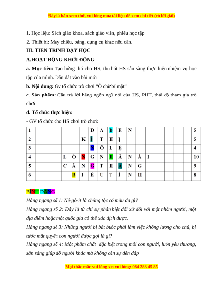 Hàng ngang số 2: Đây là từ chỉ sự phân biệt đối xử đối với một nhóm người, một