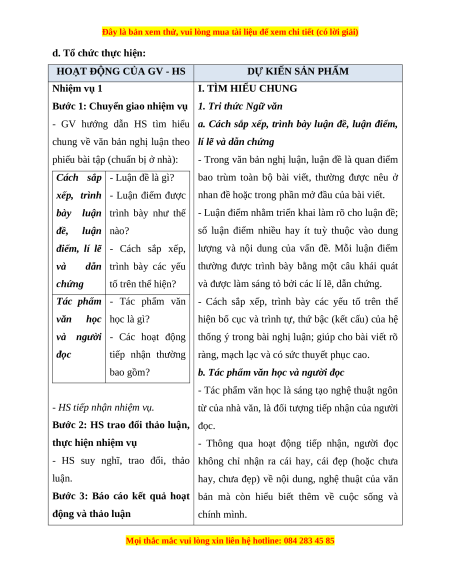 - GV hướng dẫn HS tìm hiểu a. Cách sắp xếp, trình bày luận đề, luận điểm,