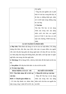 - Nhận biết, phân tích được nội dung và vai trò của các luận điểm, lí lẽ,