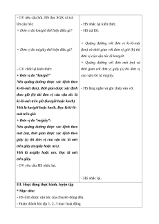 ki-lô-mét (km), thời gian được xác định - HS lắng nghe và ghi chép vào vở.
