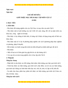 GIỚI THIỆU MỤC ĐÍCH HỌC TẬP MÔN VẬT LÍ (4 tiết) I. MỤC TIÊU 1. Kiến thức