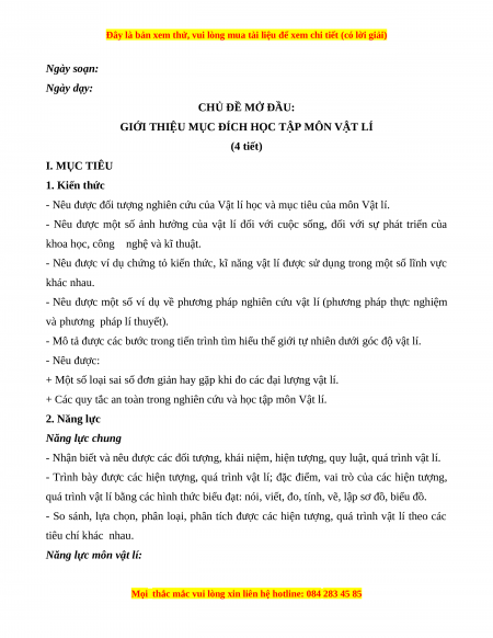 Bộ giáo án Vật lí 10 Cánh diều đã cập nhật đủ Cả năm.
