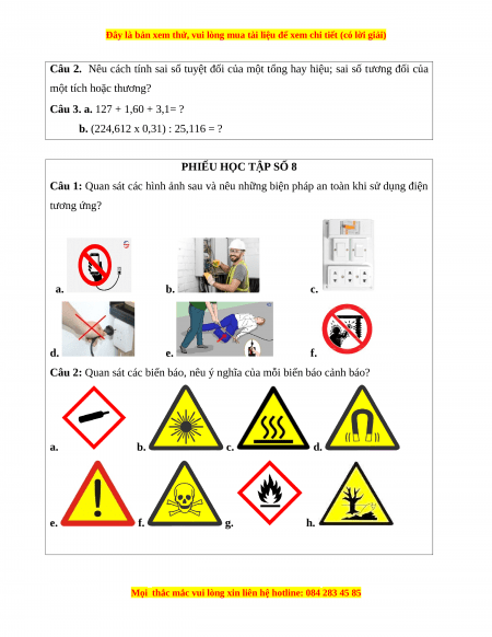 Câu 2: Quan sát các biển báo, nêu ý nghĩa của mỗi biển báo cảnh báo? a. b. c. d. e. f. g. h.