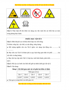 Câu 1: Lấy ví dụ chứng tỏ tri thức vật lí giúp tránh được nguy cơ gây tổn hại về sức khỏe và tài sản?