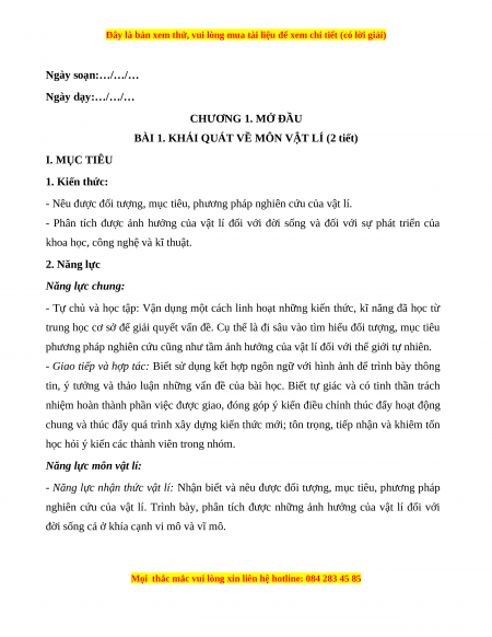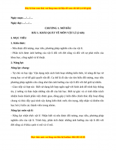 BÀI 1. KHÁI QUÁT VỀ MÔN VẬT LÍ (2 tiết) I. MỤC TIÊU 1. Kiến thức: