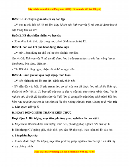 - HS nêu được được đối tượng, mục tiêu, phương pháp nghiên cứu của vật lí và biết lấy