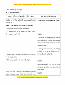 - Năng lực nhận thức vật lí: Nhận biết và nêu được đối tượng, mục tiêu, phương pháp
