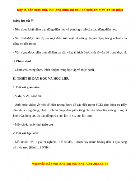 - Vận dụng được các khái niệm: biên độ, chu kì, tần số, tần số góc, độ lệch pha để mô tả dao động điều hoà. 2. Năng lực
