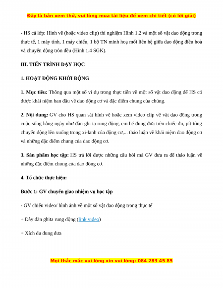 2. Nội dung: GV cho HS quan sát hình vẽ hoặc xem video clip về vật dao động trong
