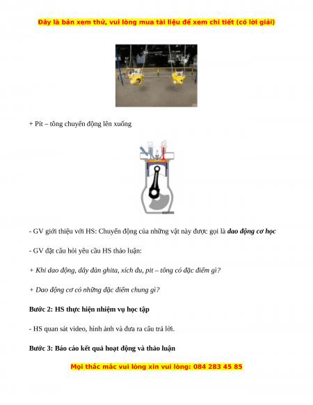 chuyển động lên xuống trong xi-lanh của động cơ,... thảo luận về khái niệm dao động cơ