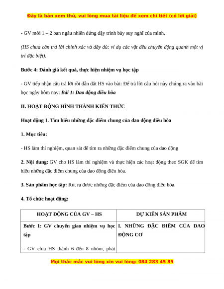 BÀI 1: DAO ĐỘNG ĐIỀU HÒA (2 TIẾT) I. MỤC TIÊU 1. Kiến thức