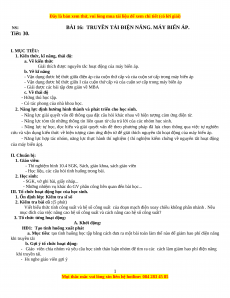 a. Mục tiêu: Hiểu được nguyên tắc hoạt động, cấu tạo và các đặc điểm của máy biến áp. b. Nội dung: