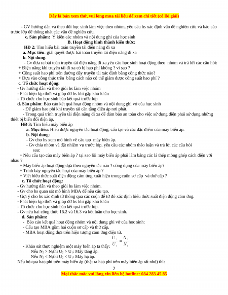 a. Mục tiêu: tạo tình huống học tập bằng cách đưa ra một bài toán làm thế nào để giảm hao phí điện năng khi truyền tải