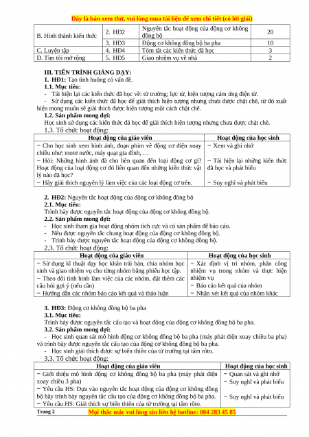 2. Học sinh: ôn lại kiến thức: dòng điện xoay chiều; từ thông; hiện tượng cảm ứng điện từ; momen từ.