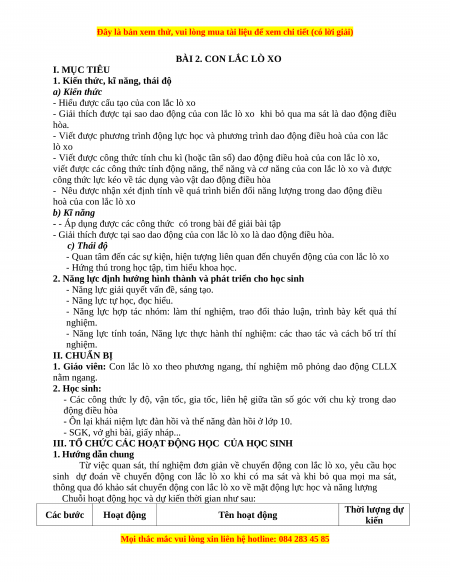 - Nêu được nhận xét định tính về quá trình biến đổi năng lượng trong dao động điều hoà của con lắc lò xo b) Kĩ năng
