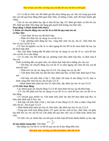 - Học sinh được hướng dẫn để phân tích lực tác dụng và con lắc lò xo, cách để làm