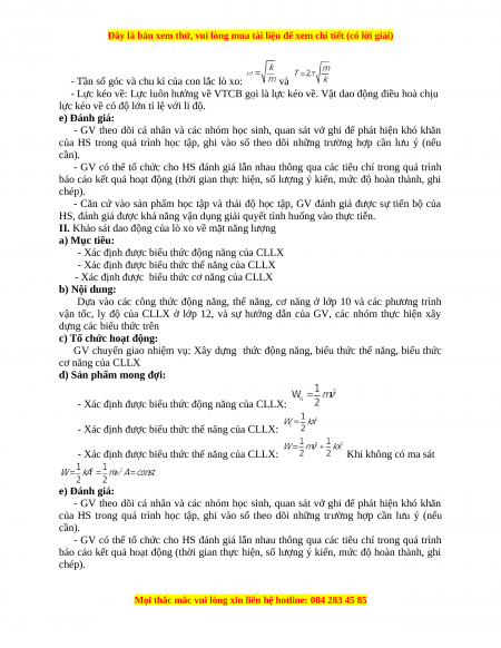- Xác định được biểu thức cơ năng của CLLX b) Nội dung: