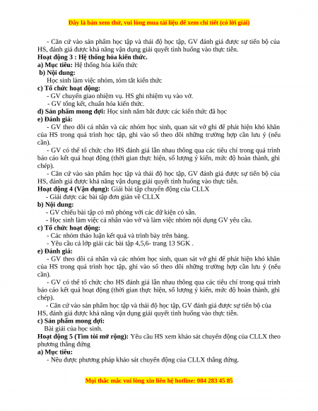 Hoạt động 4 (Vận dụng): Giải bài tập chuyển động của CLLX
