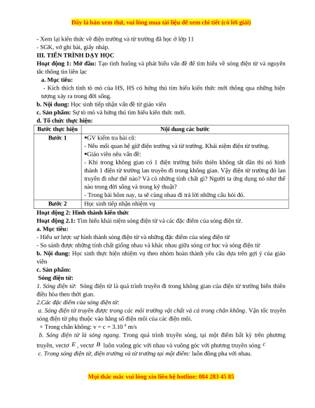 - Xem lại kiến thức về điện trường và từ trường đã học ở lớp 11
