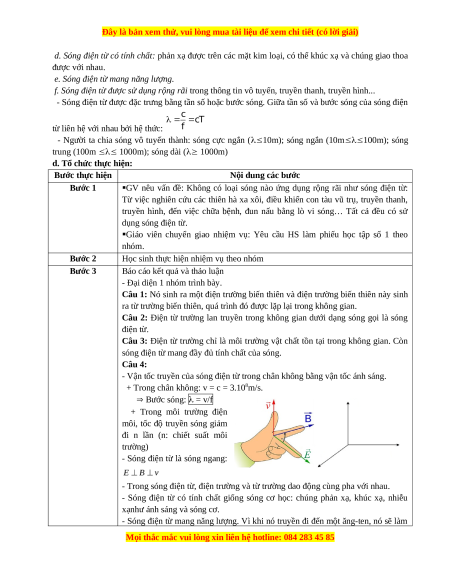 b. Nội dung: Học sinh thực hiện nhiệm vụ theo nhóm hoàn thành yêu cầu dựa trên gợi ý của giáo viên c. Sản phẩm: Sóng điện từ: