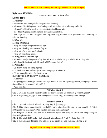 Tiết 43: GIAO THOA ÁNH SÁNG I. MỤC TIÊU 1. Kiến thức