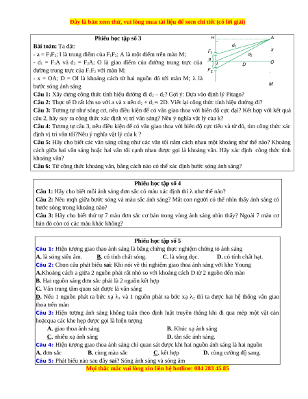 Câu 5: Hai nguồn kết hợp trong giao thoa AS là 2 nguồn phải phát ra hai sóng ánh