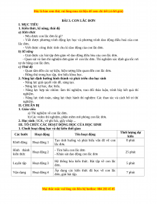 III. TỔ CHỨC CÁC HOẠT ĐỘNG HỌC CỦA HỌC SINH