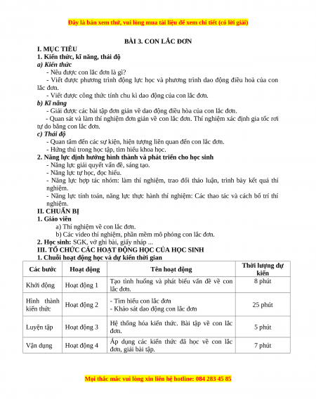 BÀI 3. CON LẮC ĐƠN I. MỤC TIÊU