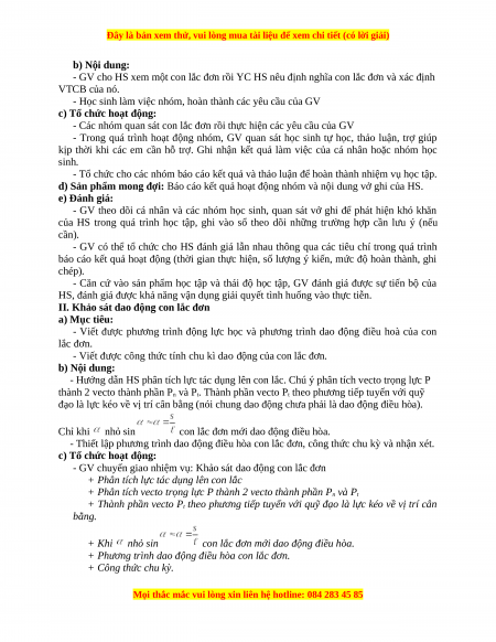 - Tìm hiểu dao động của con lắc đơn (biên độ góc lớn) và dao động của con lắc đồng hồ b) Nội dung: