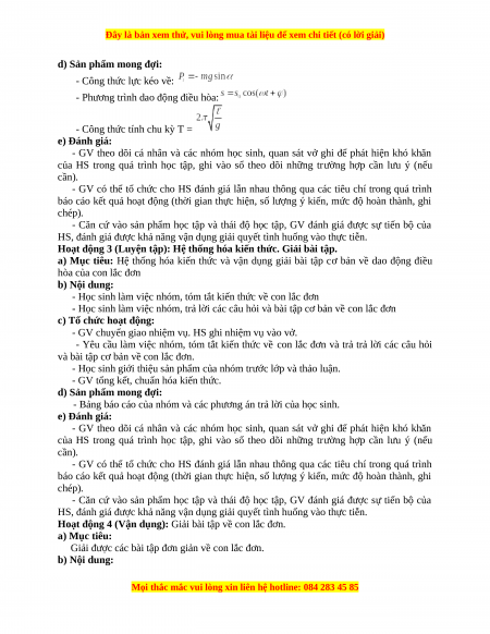 - Viết được công thức tính chu kì dao động của con lắc đơn. b) Nội dung:
